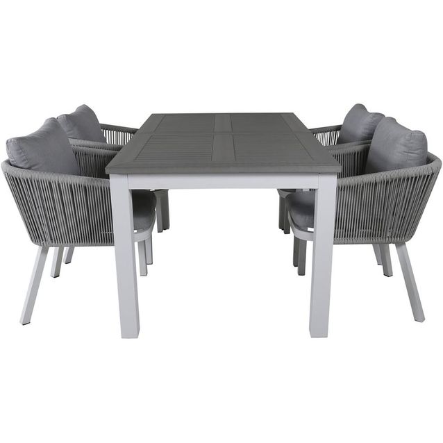 Ruokailuryhmä Venture Home, 152/210x90cm harmaa/valkoinen jatkettava Albany-pöytä + 4 harmaa/valkoista Virya-tuolia