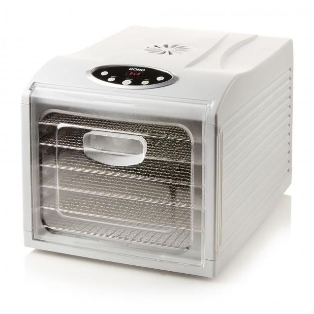 Domo-ruokakuivurilla kuivatat helposti marjat, sienet, hedelmät ja yrtit sekä lihan tai kalan, säilyttämällä niiden hyödylliset ravintoaineet ja maun. Kuivuri on varustettu LCD-ohjauspaneelilla, ajastimella ja tuulettimella, joka takaa tasaisen kuivaustuloksen. Kuivurin lämpötila on säädettävissä 35 – 70 °C:n välillä. Laitteessa on 6 irrotettavaa ja helposti puhdistettavaa kuivausritilää.
