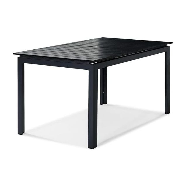 Musta jatkettava Tunis-ruokapöytä. Pöydän maksimipituus on 210 cm.