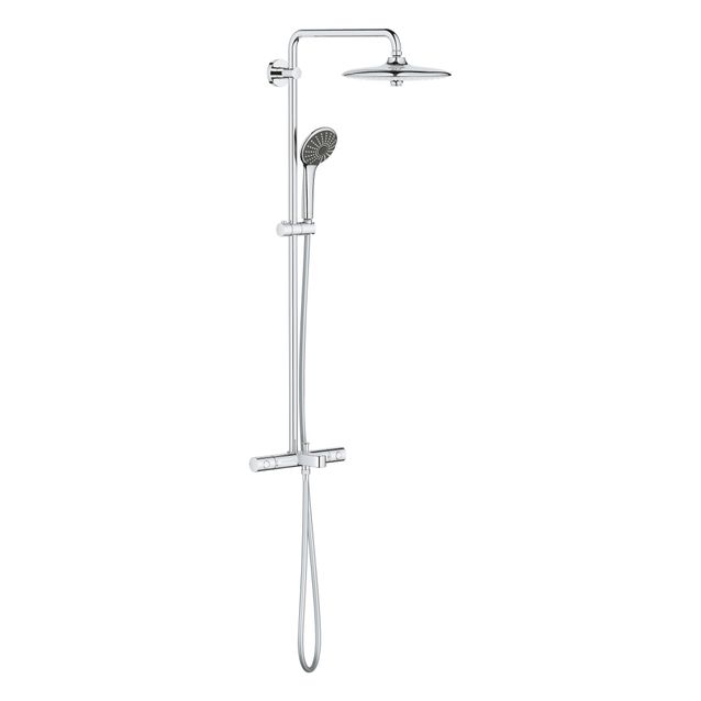 Sadesuihkusetti Grohe Vitalio Joy, termostaattihanalla, juoksuputkella, hierova suihku, suihkupää ⌀260mm, kiiltävä kromi
