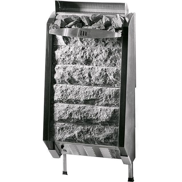 - Materiaalin tarkenne: Käsin lohkotut vuolukiviset löylyharkot, sivut mustaa graniittia
