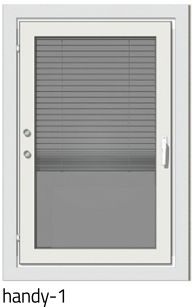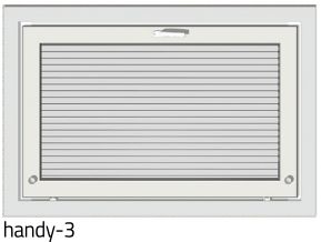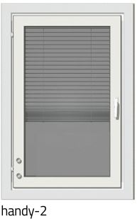 - Handy-mallilla tarkoitetaan sitä, että voit valita sälekaihtimien käyttönuppien kohdan ikkunassa - Handy-1 on yleisin malli. Näet kaikki variaatiot asennusohjeesta