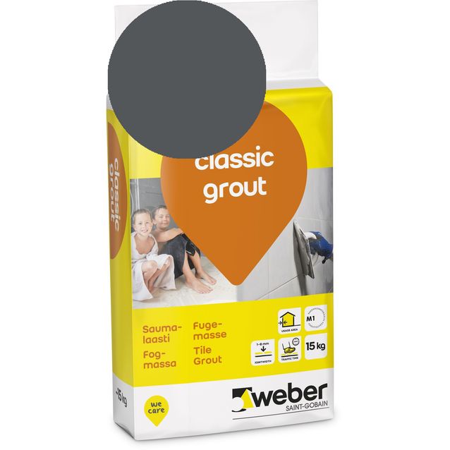 Weber classic grout 19 Anthracite on sementtipohjainen saumauslaasti imevien laattojen saumaukseen. Se soveltuu erityisen hyvin kaakelin, lasimosaiikin ja soveltuvien luonnonkivilaattojen saumaukseen seinissä.