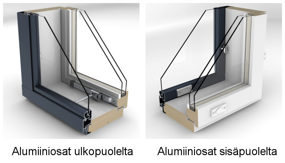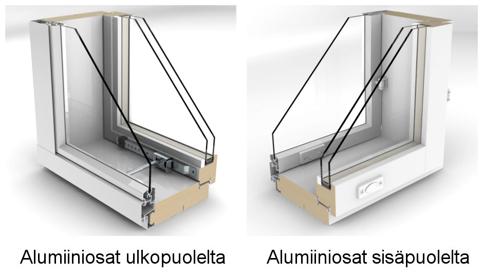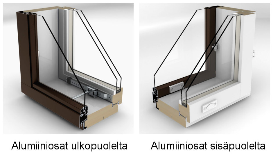 - Sisäpuite: Kaksinkertainen selektiivinen eristyslasi, jossa Argon-kaasu ja komposiittivälilista (RAL 7035