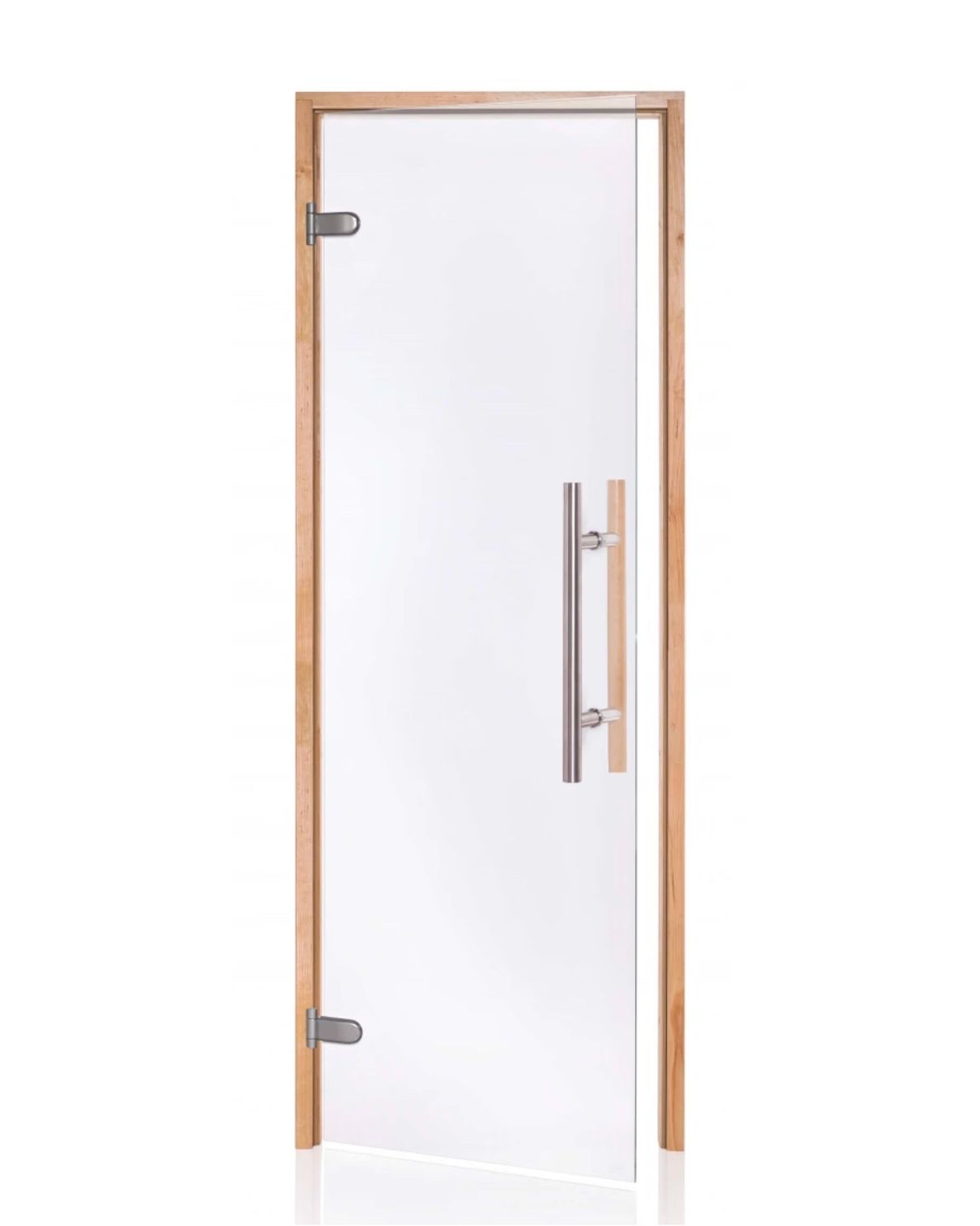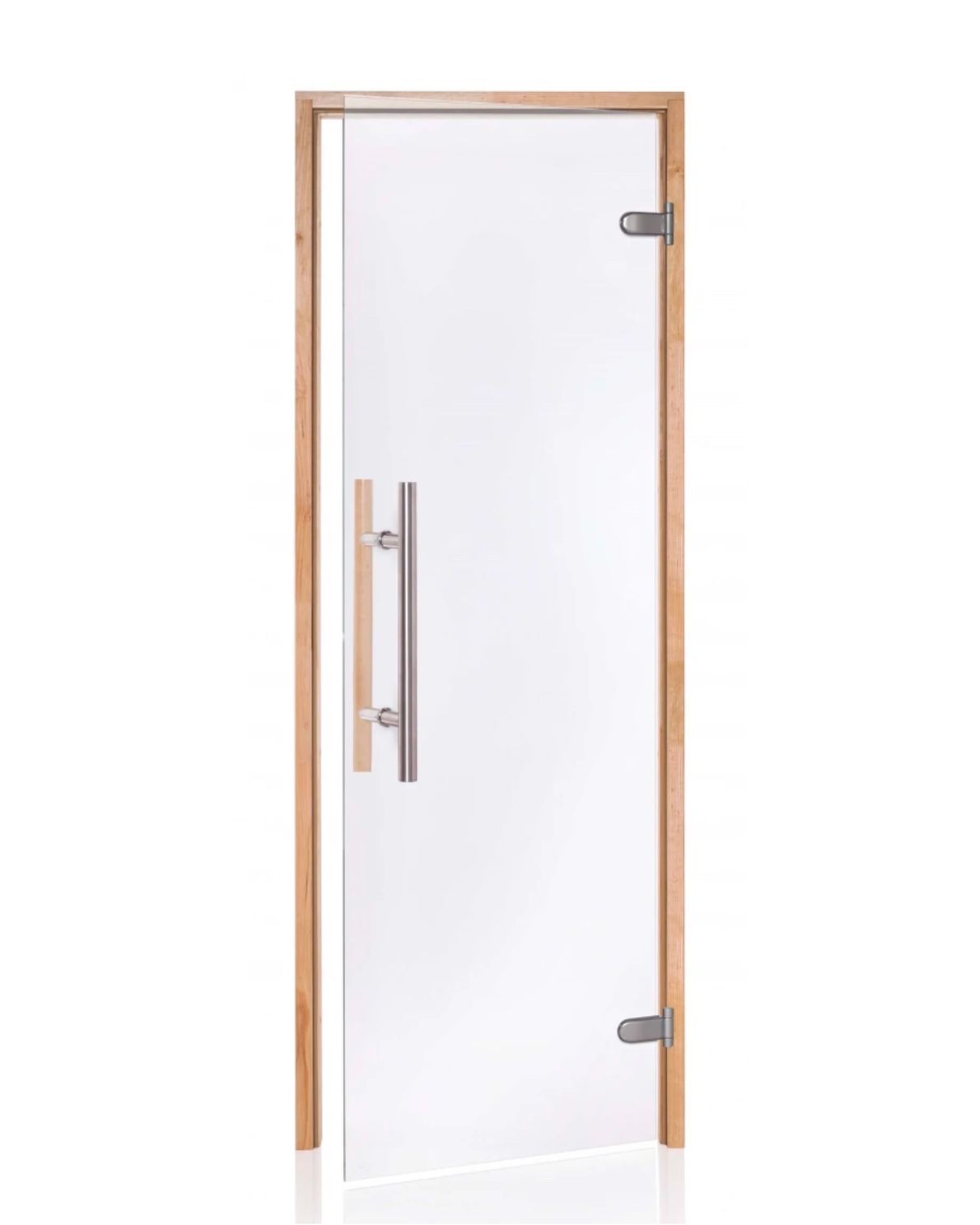 Andres Glass Light Premium näyttävä ja laadukas saunan lasiovi puisella karmilla. Kestävyyden ja turvallisuuden takavat 8 mm karkaistu lasi sekä oksattomasta liimapuusta valmistettu puukarmi. Ovi on varustettu suuremmalla kahvalla ja saatavana myös ulkopuolelta metallisena. Valitse haluamasi kahva alasvetovalikosta.