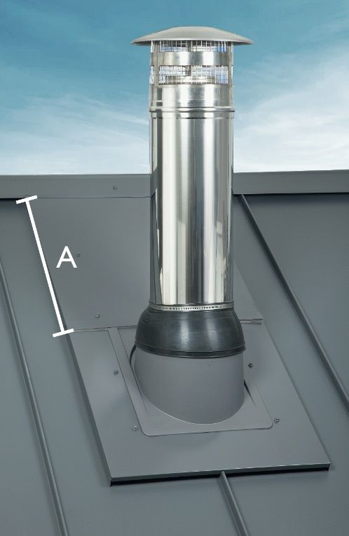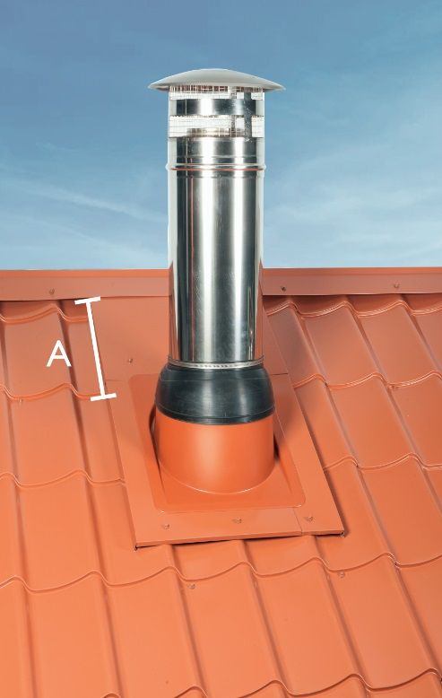 - Valitse tarvittava sisäkaton peitekauluksen tyyppi sisäkaton kaltevuuden mukaan. Peitekaulus viimeistelee sisäkaton ja piipun liitoksen siistiksi. Sisäkaton peitekaulus on samaa väriä kuin piipun alaosan väriksi on valittu. Peitekaulus kuuluu osaksi vesikaton läpivientipakettia.