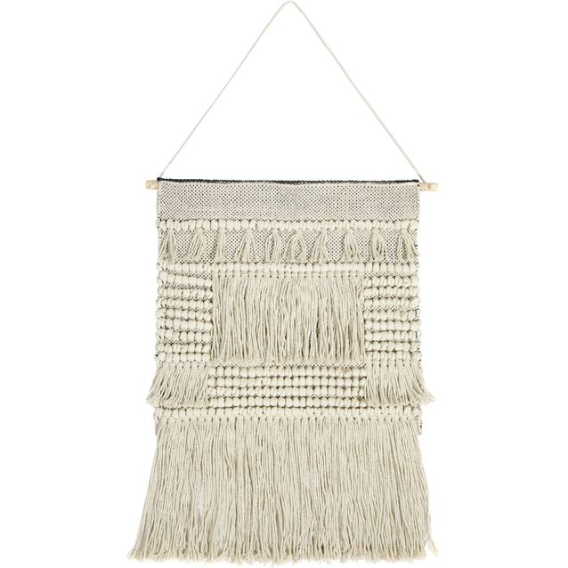 Tämän Liviannan luonnonvalkoisen seinävaatteen ryijymäinen pinta yhdistelee kauniisti erilaisia solmuja ja hapsuja toisiinsa. Hoitona säännöllinen imurointi ja tuuletus.