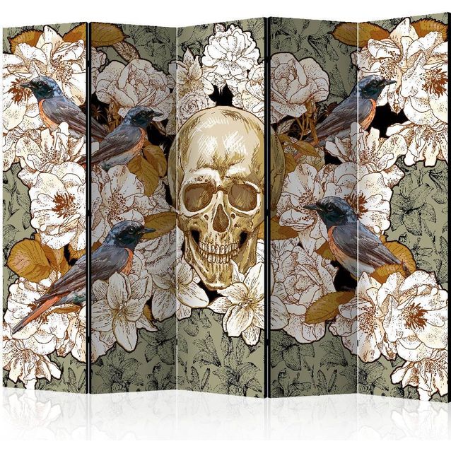 Artgeistin sermi Among flowers II toimii erinomaisesti sekä kauniina sisustuselementtinä että tilanjakajana. Sermi koostuu viidestä osasta ja on kooltaan 172 x 225 cm.