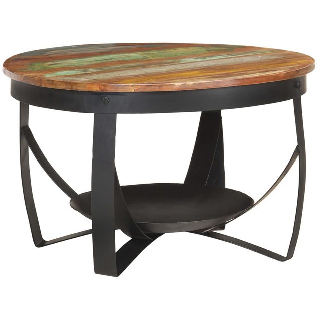 Koristepöytä on valmistettu kierrätetystä täyspuusta. Kierrätetty täyspuu on kerätty vanhojen purkamiseen päätyneiden talojen pylväistä, lattioista ja tukipalkeista. Se voi siten koostua monista eri puulajeista, kuten tiikistä, lehtipuista, mangopuusta, jne. Tämä tarkoittaa sitä, että kierrätyspuussa on erilaisten puulajien ominaisuuksia. Kierrätetty puu on jo vanhentunutta, kulunutta ja kuivunutta, joten se ei kutistu eikä taivu. Rautapohja lisää pöydän vakautta. Vankalle pöytälevylle voit asettaa mm. juomia ja välipaloja.
