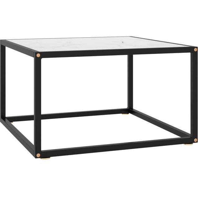 Sohvapöytä musta valkoisella marmorilasilla 60x60x35 cm
