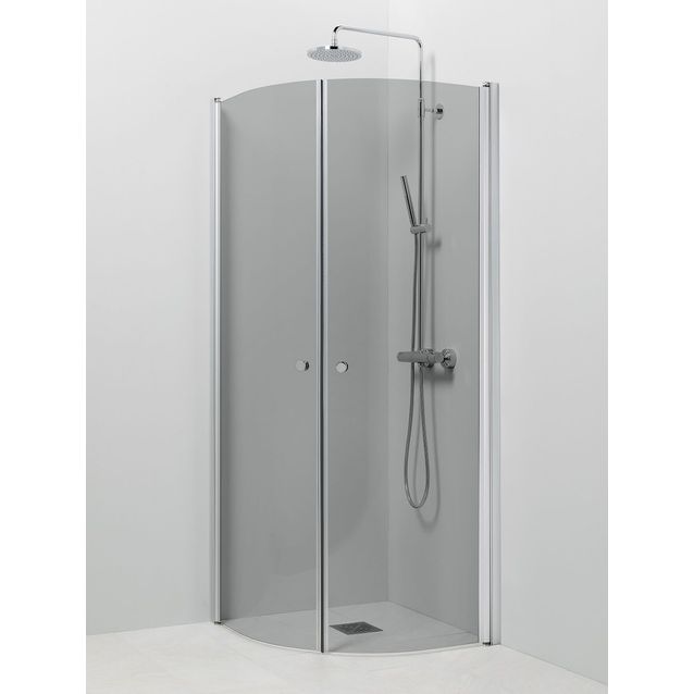 Vihtan Pisara-malliston 4+4 -suihkukulma on mitoiltaan 700/900 mm, ja siinä on kaksi kääntyvää, kaarevaa harmaata lasia. Kaareva suihkukulma on kaunis ja käytännöllinen ratkaisu kylpyhuoneeseen. Pisara 4+4 -suihkukulma rajaa tehokkaasti suihkutilan, mutta vie vain vähän lattian pinta-alaa, kun suihkua ei käytetä.