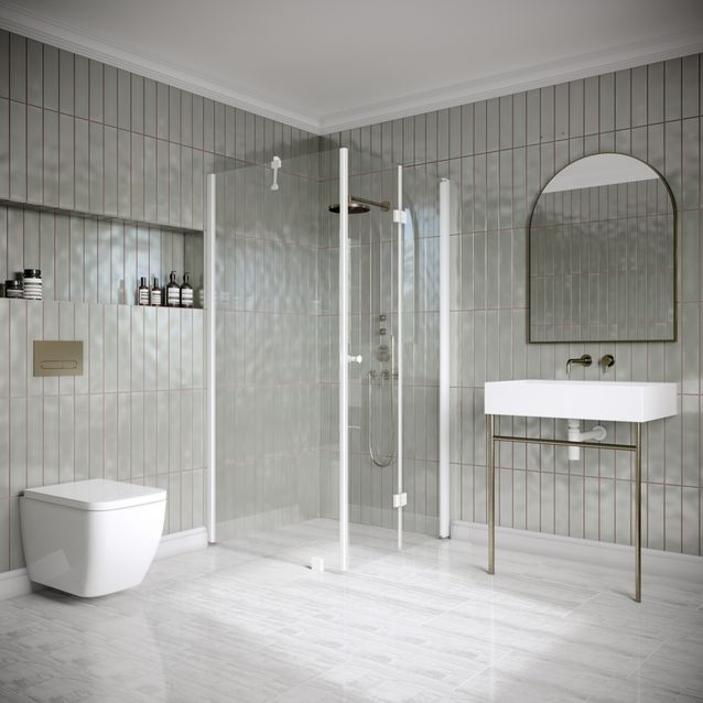 - Toimitussisältö: 2 suihkuseinää, nuppivedin, laahustiiviste 33mm, vinotuki, lattiahela, sokkelitiiviste 40mm, magneettitiivisteet, asennusohjeet