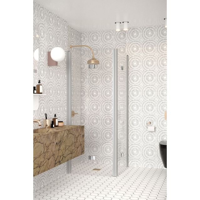 Hietakarin kirkaslasinen 70x70 cm Infinia-suihkunurkka koostuu kahdesta taittuvasta ovesta harmaalla profiililla. Infinia soveltuu hyvin suihkukulmaan, jossa ovet eivät välttämättä mahdu kunnolla avautumaan ulospäin. Suihkunurkka on 190 cm korkea.