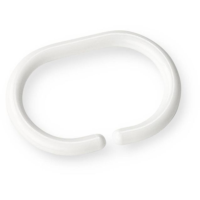 Muoviset suihkuverhon renkaat. Pakkauksessa 12 rengasta.