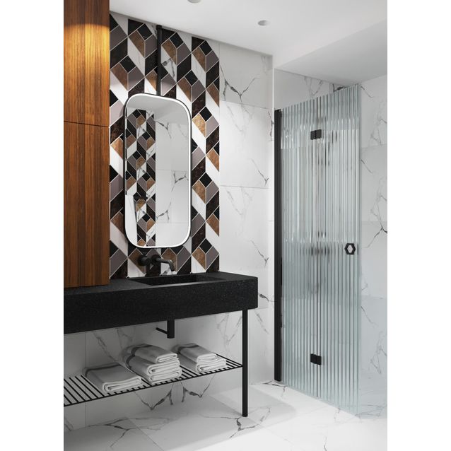 Hietakarin taittuva suihkuseinä Forma 303 on mustilla alumiiniprofiileilla varustettu suihkuseinä, joka on valmistettu kiinnostavasta reeded-kuviolasista. Kauniisti laskustuva suihkuseinä on valmistettu kirkkaasta lasista ja se pitää kylpyhuoneen kuivana suihkun ajan. Keskeltä taittuva suihkuseinä on joustava ratkaisu, joka ei vie liikaa tilaa kompaktistakaan kylpyhuoneesta, mutta toimii silti kiinteän suihkuseinän tavoin kylpyhuoneen ja kalusteiden suojana. Suihkuseinä kääntyy molempiin suuntiin 90 astetta ja varustetaan säädettävällä keskityksellä. Keskitys pyrkii palauttamaan suihkuseinän takaisin auki ja kiinni -asentoihin. Uloin lasi kääntyy lisäksi 180 astetta sisempään lasiin nähden jolloin lasit taittuvat toisiaan vasten suihkutilan sisäpuolelle.
