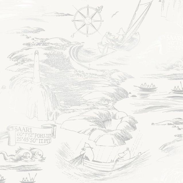 Merihenkisessä Sandudd Muumi 5355-4 -kuitutapetissa rakkaat muumihahmot seikkailevat meren aalloilla. Tyylikäs valkohopea Muumi-tapetti sopii niin lapsen kuin aikuisenkin makuun. Sandudd Muumi -mallistoon kuuluva tapetti sopii hyvin yhteen myös malliston muiden tapettien kanssa.