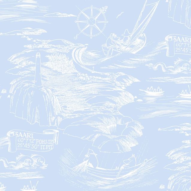 Merihenkisessä Sandudd Muumi 5355-6 -kuitutapetissa rakkaat muumihahmot seikkailevat meren aalloilla. Tyylikäs sinivalkoinen Muumi-tapetti sopii niin lapsen kuin aikuisenkin makuun. Sandudd Muumi -mallistoon kuuluva tapetti sopii hyvin yhteen myös malliston muiden tapettien kanssa.