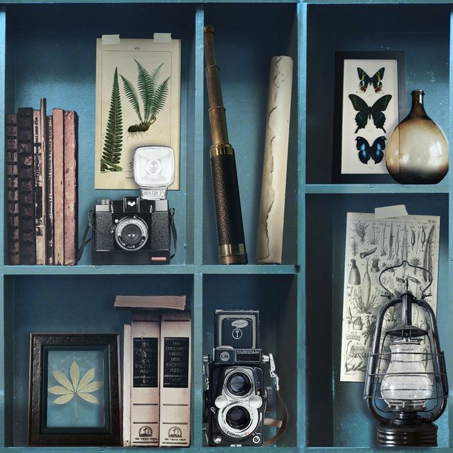 Sandudd Vermeil 100277 kuitutapetissa on kiehtova ja persoonallinen kuviointi, joka voi kuvata esimerkiksi luonnontieteilijän kirjahyllyä. Sinisävyinen tapetti on upea katseenvangitsija, joka tuo tilaan runsaasti eloa.