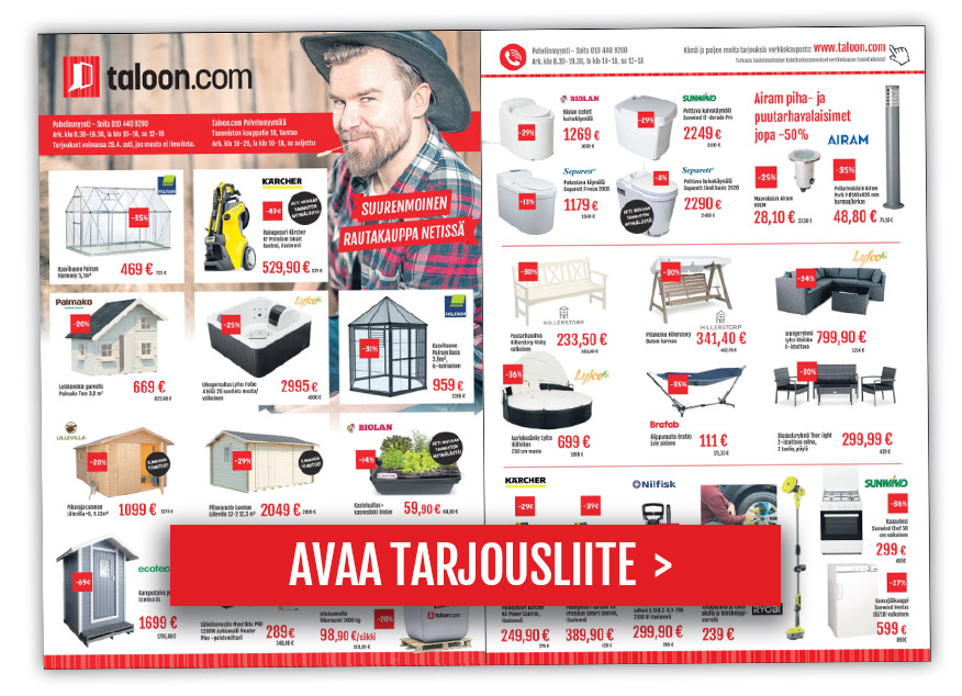 Tutustu kovimpiin tarjouksiin lahjaideoista, työkaluista, kodintuotteista, rakennusmateriaaleista ja monista muista tuotekategorioista.