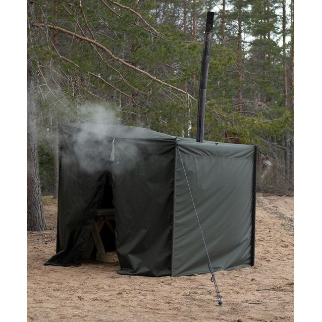 Hiisi 2 on kahdelle henkilölle suunniteltu saunateltta ulkoilmakäyttöön, helppo siirtää ja pystyttää melkein minne tahansa. Kevyt paino ja kompakti pakkauskoko (noin 165 x 20 x 10 cm) tekevät kuljetuksesta ja säilytyksestä helppoa. Ota Hiisi mukaan rannalle, tunturiin, metsän siimekseen tai takapahille ja nauti lämmittävistä löylyistä missä ikinä oletkaan. Kamiina ja lauteet myydään erikseen!