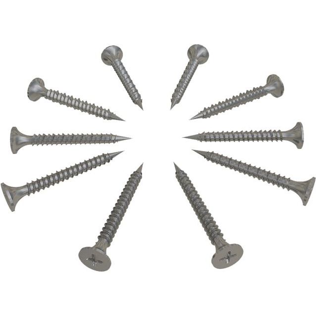 Hiiliteräsruuvit märkätilalevyn tai rakennuslevyn kiinnittämiseksi puu- ja metallirunkoihin.