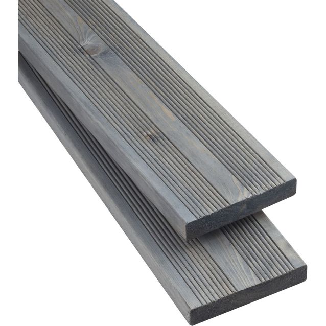 Kotimainen 28 x 145 x 2395 mm vihreä kestopuinen terassilauta, jonka käyttöpinnat on öljyämällä värjätty harmaaksi. Laudan kyllästysluokka on AB. AB-kyllästysluokan puutavaraa suositellaan käytettäväksi maanpinnan yläpuolella olevissa rakenteissa, kuten kantavat rakenteet, terassit, puutarharakenteet ja -kalusteet, parvekkeet, aidat, ulkoverhoukset ja leikkikenttäkalusteet.