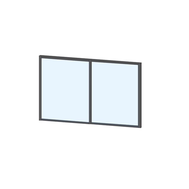 Tämän kaksiosaisen, puolikorkean liukulasituksen lasit ovat kirkkaat ja ympäröivä alumiiniprofiili harmaa.