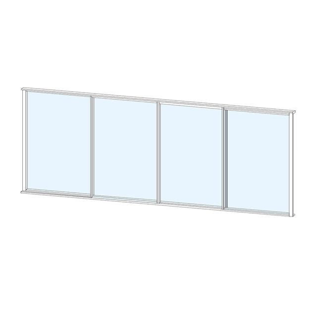 Tämän neliosaisen, puolikorkean liukulasituksen lasit ovat kirkkaat ja ympäröivä profiili valkoinen.