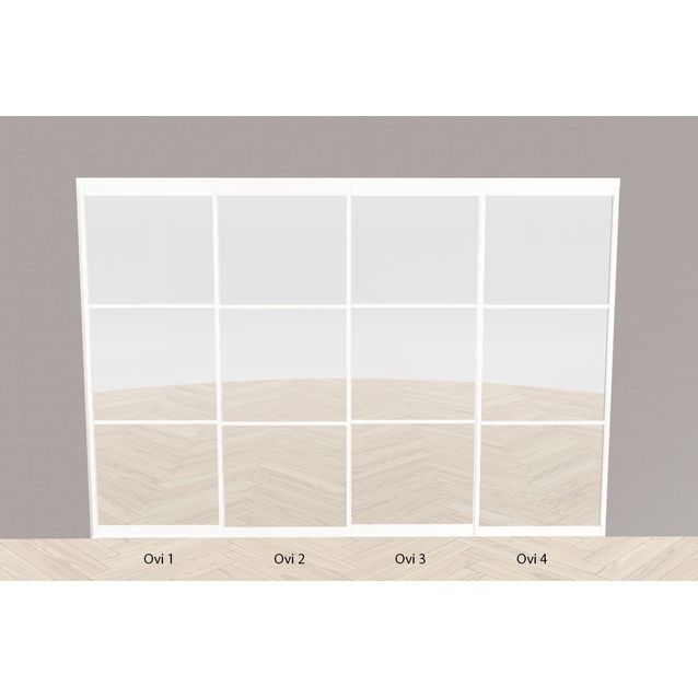 Tilanjakaja/liukuovi Mirror Line neljällä ovella valkoinen matala malli mittatilaus