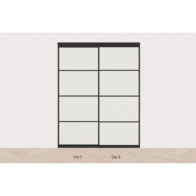 Tilanjakaja/liukuovi Mirror Line opaalilasi, kahdella ovella, musta, korkea malli, mittatilaus