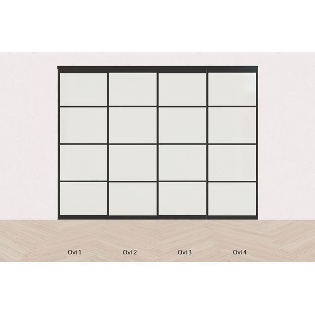 Tilanjakaja/liukuovi Mirror Line opaalilasi, neljällä ovella, musta, korkea malli, mittatilaus