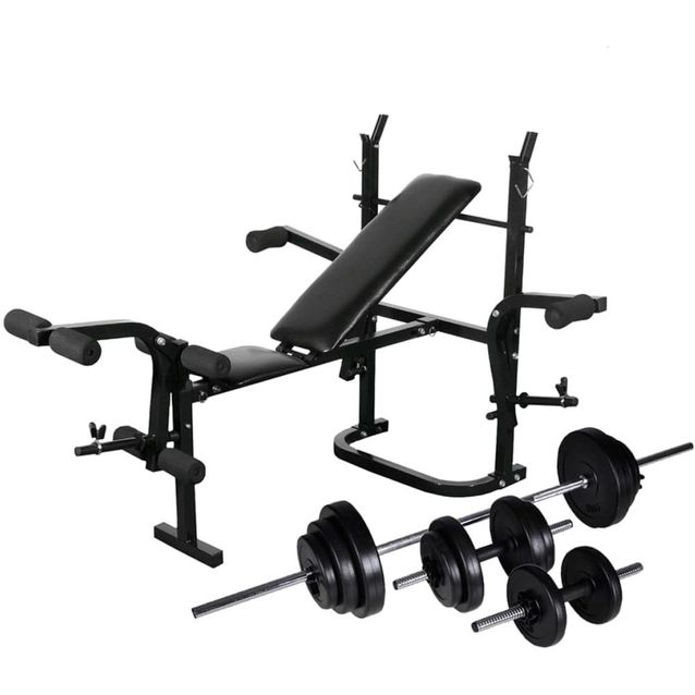 Treenipenkki levytanko- ja käsipainosarjalla, 30.5kg, 163x123x147cm