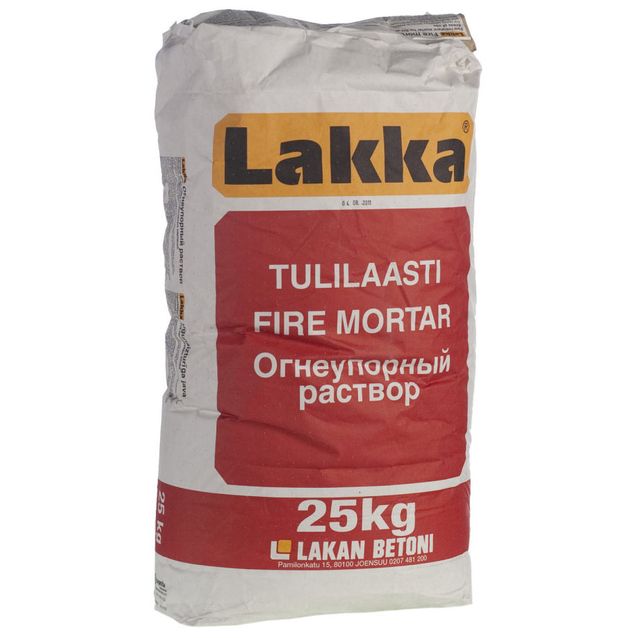 Lakka Tulilaasti eli tulenkestävä muurauslaasti on tarkoitettu tulipesässä käytettävien tulitiilien muuraukseen. Lämmönkestävyys +1200 °C. Tuote ei sovellu ulkotiloihin. Laastin väri harmaa. Raekoko 0,5 mm. Veden tarve 2,7-3 l/15 kg. Valmista massaa 7,2-7,8 l/15 kg. Menekki n. 0,13kg/tiili 2 mm saumapaksuudella.