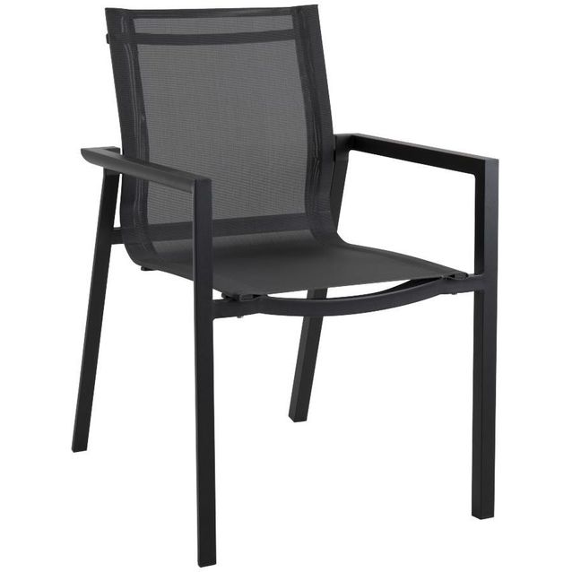 Modernilla Delia-tuolilla on mukava istua. Pinottava tuoli on helppo varastoida.