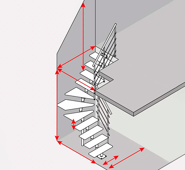 Askelman korkeus määrittää portaiden käyttömukavuuden ja askelmien määrän. Askelman korkeus, eli nousukorkeus, suositellaan olevan 18–21 cm, mutta jos haluat portaiden vievän vähemmän tilaa huoneessa, voit valita korkeamman nousun.