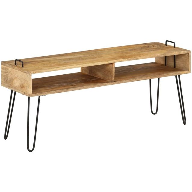 Kiinteästä mangopuusta ja tukevasta teräsrungosta koostuva hifi-kaappi on hyvin vakaa ja kestävä. Tasolle voi asettaa television tai stereot ja koriste-esineitä kuten maljakoita ja koristekasveja. Hylly tarjoaa lisätilaa DVD-soittimelle, pelikonsolille, suoratoisto- ja medialaitteille jne., jossa ne pysyvät siististi järjestyksessä. Teräsrunko lisää kaapin vakautta sekä teollista tyyliä. Jokainen työvaihe hiomisesta lakkaukseen on suoritettu erittäin huolellisesti. TV-taso on helppo koota.