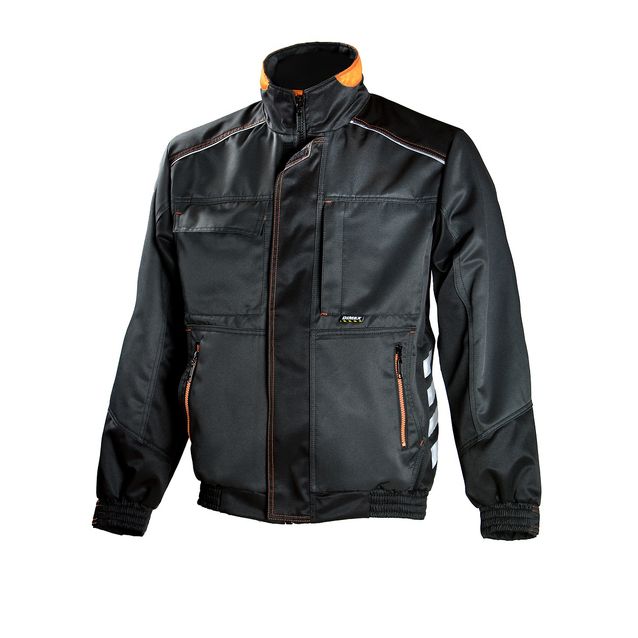 Dimexin monikäyttöinen ja vuoreton työtakki hylkii vettä ja likaa. Vetoketjullinen rintatasku, kannellinen rintatasku, esiin otettava vaaka/pysty henkilökorttitasku, tupla-alataskut, vetoketjullinen ja avoin povitasku. Hihansuussa ja helmassa kuminauha ja tamppi. Etulista. Heijastimet hartioilla ja takana sivuilla. Materiaali: 70 % polyesteri 30 % puuvilla, 245 g/m²