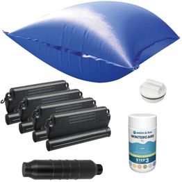 - Toimitussisältö: GRE-teräsallas, pohjasuojus, PVC-liima, 25 metrin maahan kaivettava allasletku, UV-suojattu sininen PVC-allaspussi 0,70 mm, pintakaivosarja, suodatinjärjestelmä Pro Classic 300 250W letkuineen ja kiristimineen, 700 g Filterballs-suodatinmateriaalia, 3-askelmaiset ruostumattomat terästikkaat (AISI 304), käyttöohje pohjoismaisilla kielillä