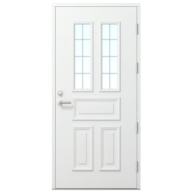 Kaskipuun Kraaseli on kohokuvioilla viimeistelty tyylikäs ulko-ovi. Ovessa on kaksi lasiaukkoa joissa on vakiona kirkas lasi ja ristikkokuvio jyrsittynä lasielementtiin. Voit valita oveen myös etsatun tai crepilasin, mutta huomioithan että silloin ristikkokuviointi häviää. Saaristolaisovet kunnioittavat puhtaita, perinteisiä muotoja ja linjoja. Sisäpuolelta ulko-ovi on sileäpintainen. Kaskipuun ulko-ovi kestää Suomen vaativat sääolosuhteet ja pitää viiman sekä kylmän oven ulkopuolella. Thermo-rakenteisessa ovessa on erinomainen lämmöneristävyys. Erilaisten valintojen avulla ovesta on helppo räätälöidä juuri omaan tarpeeseen ja kotiin sopiva mittatilausovi.