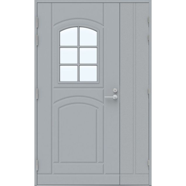 Koristeristikolla ja lasiaukolla varustettu levikkeellinen ulko-ovi, jonka alaosassa kuviouritukset. Levikkeen ansiosta rakennukseen saadaan näyttävä ja tarvittaessa avautuva suurempi kulkuaukko. Varma on Pihlan suosituin ovirakenne, jonka paksu ovilehti ja tuplatiivistys tekevät ovesta lämpimän ratkaisun. Lasiaukko ja oven kuviourat kaareutuvat yläosastaan muistuttaen vanhojen puuovien muotoja. Laadukkaan Pihla-ulko-oven asumismukavuutta lisäävistä ominaisuuksista voit nauttia joka päivä. Suunnittelussa on kiinnitetty erityistä huomiota energiatehokkuuteen - eristyksen ja tiiviin rakenteen ansiosta sekä kylmyys että vedontunne pysyvät poissa.