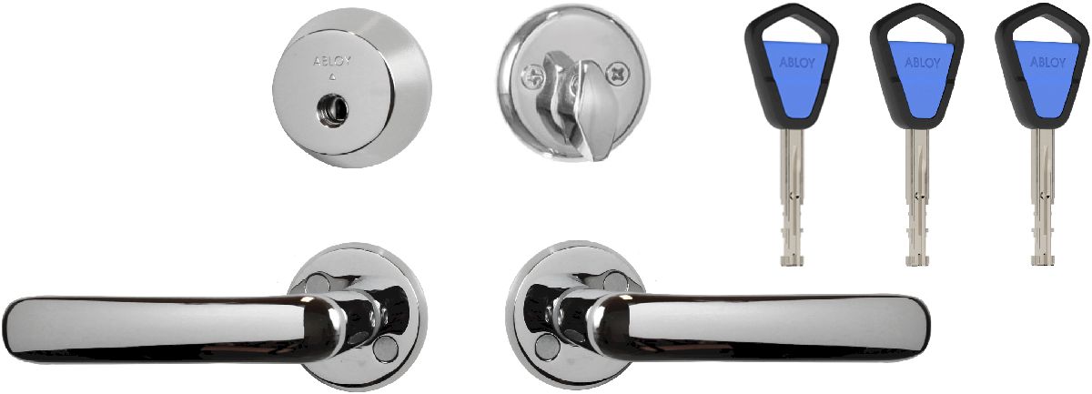 - Lukkorunko: Vakiona Abloy-lukkorunko LC102, säädettävä vastarauta