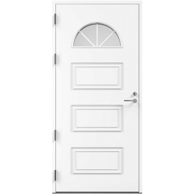 Oulux Leinikki Termo on moderni ulko-ovi tyylikkäillä koristeurituksilla ja puoliympyrän muotoisella lasiaukolla. Oven U-arvo on 0,8 ja ovilehden kokonaisvahvuus 86 mm. Ovilehden pinta on säänkestävää HDF-levyä, jäykisteenä on alumiinilevy. Reunalla kiertää liimapuun ja kertopuun yhdistelmä.