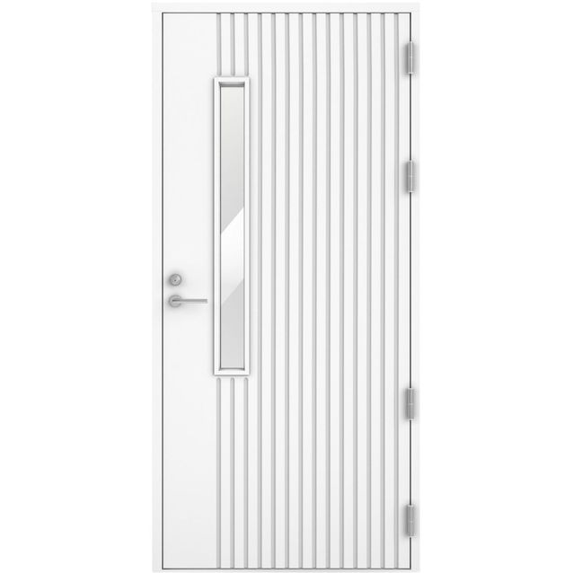 Oulux Vadelma on modernin tyylikäs ulko-ovi lasiaukolla ja pystysuuntaisella urituksella. Oven U-arvo on 0,8 ja ovilehden kokonaisvahvuus 86 mm. Ovilehden pinta on säänkestävää HDF-levyä, jäykisteenä on alumiinilevy. Reunalla kiertää liimapuun ja kertopuun yhdistelmä.