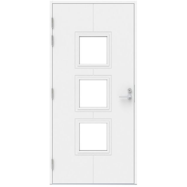 Kolmella suurella ruutuikkunalla varustettu ovi. Varma on Pihlan suosituin ovirakenne, jonka paksu ovilehti ja tuplatiivistys tekevät ovesta lämpimän ratkaisun. Tyylikkään Pihla-ulko-oven asumismukavuutta lisäävistä ominaisuuksista voit nauttia joka päivä. Suunnittelussa on kiinnitetty erityistä huomiota energiatehokkuuteen - eristyksen ja tiiviin rakenteen ansiosta sekä kylmyys että vedontunne pysyvät poissa.
