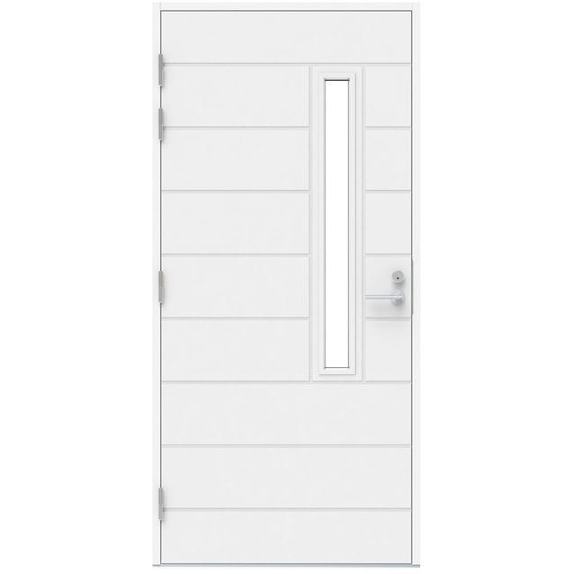 - Vakiovarusteet: Neljä säädettävää saranaa, lukkorunko ja säädettävä lukon vastarauta