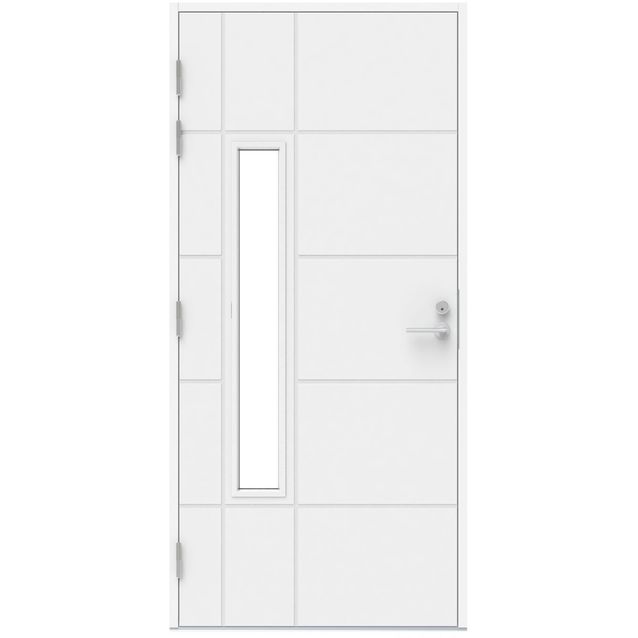 Ristiin kulkevalla kuviourituksella varustettu ulko-ovi, jonka saranapuolen laidassa on kapea lasiaukko. Varma on Pihlan suosituin ovirakenne, jonka paksu ovilehti ja tuplatiivistys tekevät ovesta lämpimän ratkaisun. Pihlan ulko-ovi on kotisi tyyliin sopiva käyntikortti, jonka asumismukavuutta lisäävistä ominaisuuksista voit nauttia joka päivä. Suunnittelussa on kiinnitetty erityistä huomiota energiatehokkuuteen - eristyksen ja tiiviin rakenteen ansiosta sekä kylmyys että vedontunne pysyvät poissa.