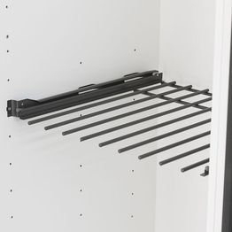 Pidä kenkäsi järjestyksessä pehmeästi ja äänettömästi kulkevassa, norjalaisessa Norscan Roller M60 -kenkähyllyssä. Antrasiitti kenkähylly sopii 600 mm:n levyiseen M60-kaappiin. Ulosvedettävän hyllyn kantavuus on 15 kg ja kiskon pituus noin 500 mm. Rullakiskossa on pysäytys ulos vedettäessä. Pakkaus sisältää hyllyn, Soft Roll -rullakiskot ja kiinnitysruuvit. Kiskot kiinnitetään kaappiin mukana tulevilla ruuveilla. Hylly on suunniteltu runkovahvuudeltaan 16 mm:n kaapeille, joiden sisäleveys on 567-569 mm. Telineellä on 30 vuoden takuu.