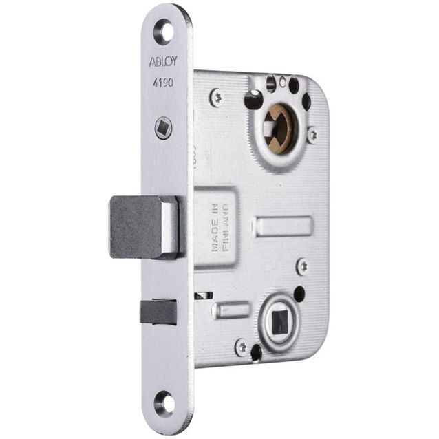 Automaattisesti takalukittuva sylinterilukkorunko. Takalukittumista ohjataan rintalevyssä olevalla valintanupilla.