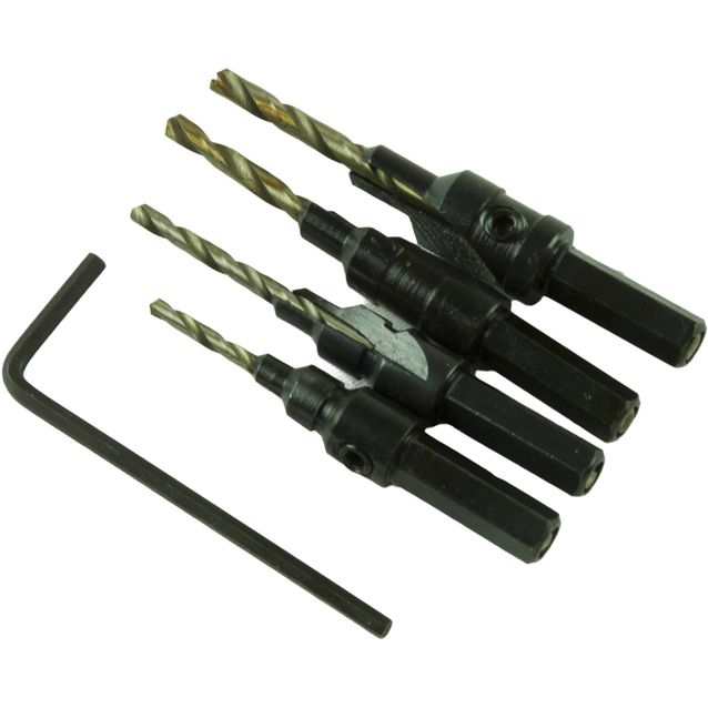 4-osainen upotusporasarja. Upotusporasarja mahdollistaa erikokoisten ruuvien tai naulojen kantojen upottamiseen porattavan kappaleen pinnan tasolle tai sen alapuolelle.
