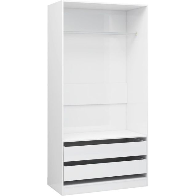 Vaatekaappi, 100x50x200 cm, lastulevy, korkeakiilto valkoinen